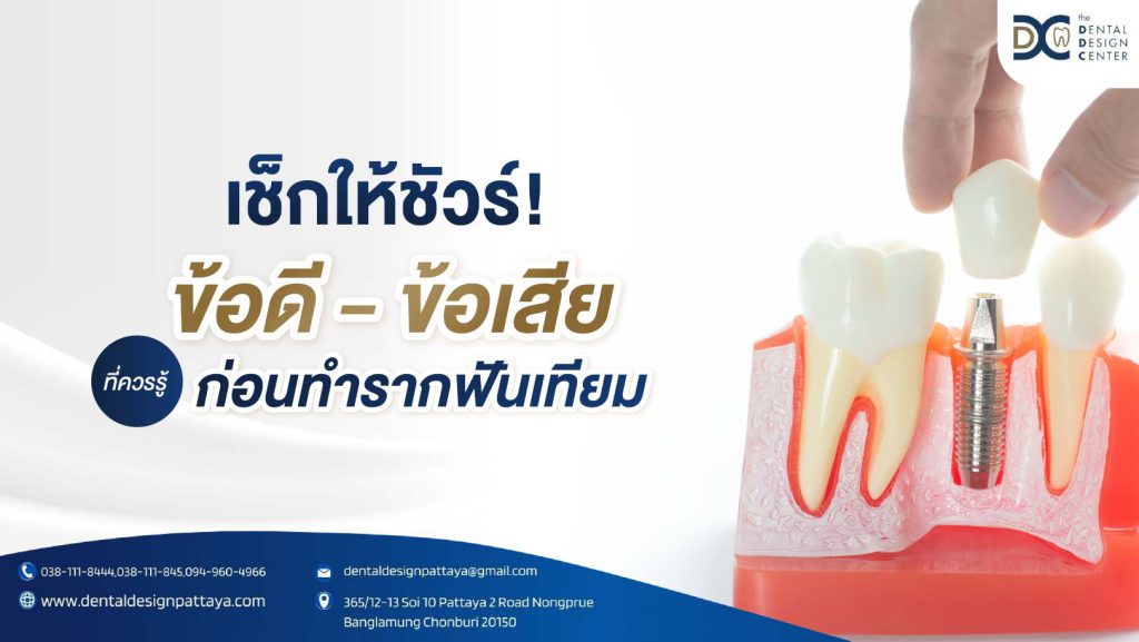 การทำรากฟันเทียมมีข้อดีและข้อเสียที่ควรพิจารณาอย่างรอบด้าน เพื่อให้เข้าใจและเตรียมตัวรับมือกับความเสี่ยงต่าง ๆ ที่อาจเกิดขึ้นจึงเป็นสิ่งที่ควรทำและสำคัญอย่างมาก ผู้ที่สนใจควรศึกษาและทำความเข้าใจข้อมูลให้ครบถ้วน รวมถึงการปรึกษาทันตแพทย์เพื่อรับคำแนะนำที่เหมาะสมก่อนตัดสินใจ